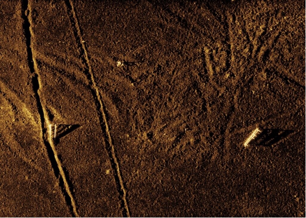 ((Фотографии - компании Kraken Robotics, на первой - демонстрация автономного запуска и возвращения аппарата Katfish с USV Sefine RD-22; на второй - изображение, полученное с помощью гидролокатора Kraken с синтезированной апертурой во время демонстрации)).