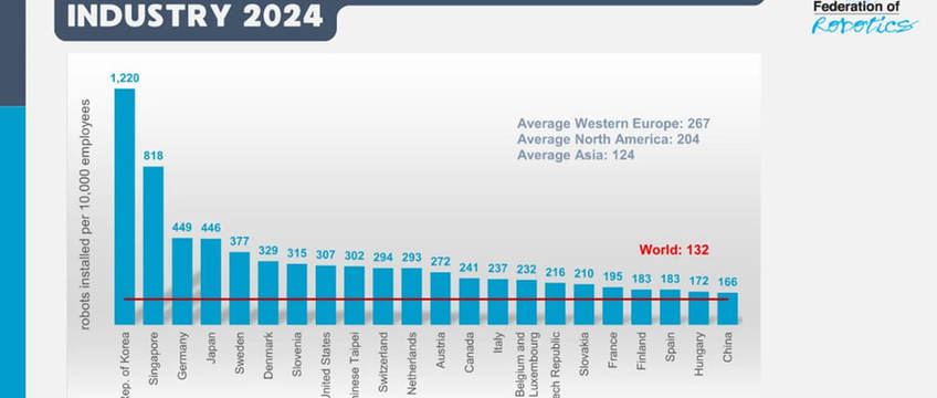 В странах Западной Европы плотность роботов выросла на 3% по сравнению с 2023 годом. Восемь стран вошли в глобальный топ-20: Германия, Швейцария, Нидерланды, Австрия, Италия, Бельгия, Люксембург, Франция и Испания. Европейский союз довел плотность роботов до 231, это существенно выше среднемирового показателя в 132 робота.
