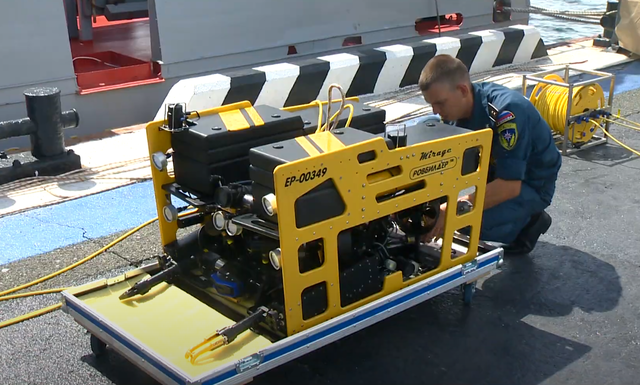 Любопытная цитата: "Наряду с водолазами неустанно работает специальный робот «Sia Seamor 300 T» канадского производства [Прим. АБ: речь об американском роботе Seamor 300T], который доставили из Ханты-Мансийска. Такое оборудование гораздо мощнее робота «Гном», с которым до сих пор работали наши спасатели, и способно «видеть» под водой на расстоянии 1,5 м (против 30-50 см у «Гнома»). Аппарат «Sia Seamor» больше «Гнома», его размеры примерно 50х40х40 и он похож на батискаф, только необитаемый." / ugra-news.ru