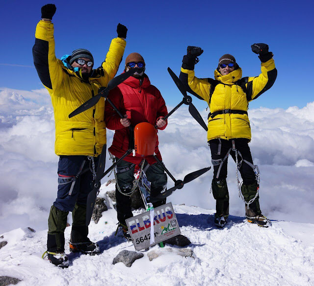 После полета над Эльбрусом, квадрокоптер совершил посадку на вершину, после чего его подобрала команда компании Геоскан.