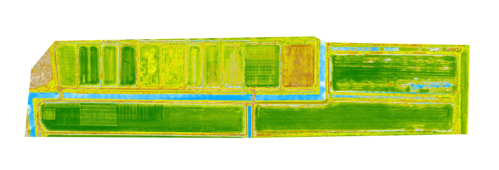 Снимок рисового поля с мультиспектральной камеры "Геоскан Поллукс" в NDVI-канале,