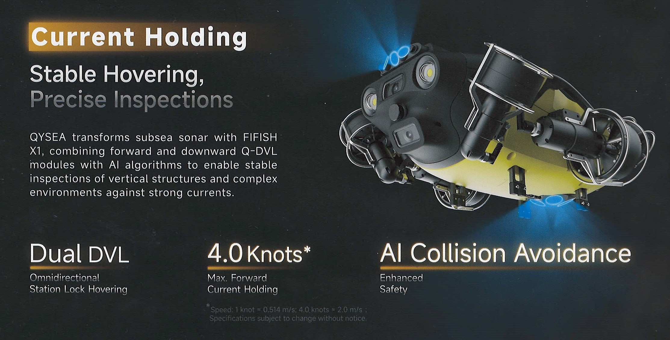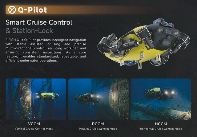 Fifish X1 с системой Q-Pilot должен обеспечивать интеллектуальную навигацию со стабильным управляемым движением, что снижает нагрузку на оператора (если он освоил соответствующие режимы управления). Система особенно удобна для выполнения стандартизированных работ.