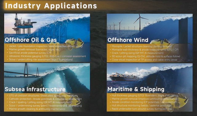 Брошюра компании рекомендует аппарат как пригодный для использования на морских месторождениях, в контроле инфраструктуры, в судоходстве.