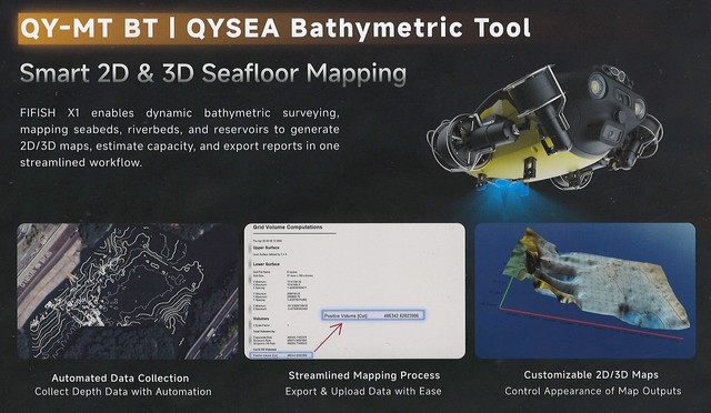 Fifish X1 обеспечивает динамическую батиметрическую съёмку, картографирование морского или речного дна, водохранилищ для создания 2D/3D карт, оценки объёмов и экспорта отчётов в рамках одного оптимизированного рабочего процесса.