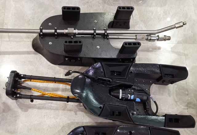 UTG (толщиномер), FMD (от англ. flooded member detection - обнаружение внутренних повреждений подводной конструкции); водяная пушка; ТНПА Fifish X1, кабель-трос на катушке - отмечу ручки для переноски и колесики, что удобно