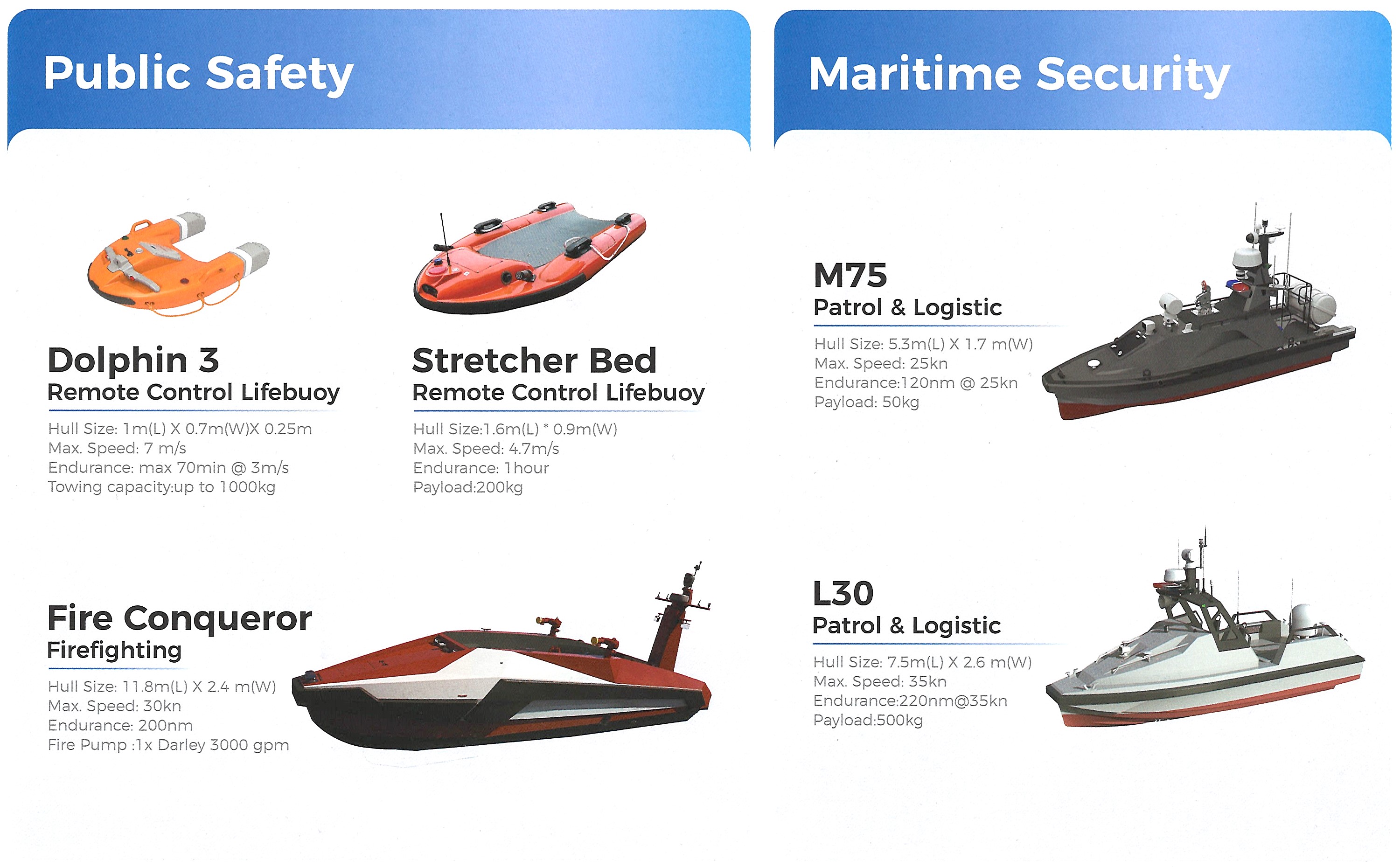 Специальные USV компании - спасательные, патрульно-логистические, для борьбы с пожарами.