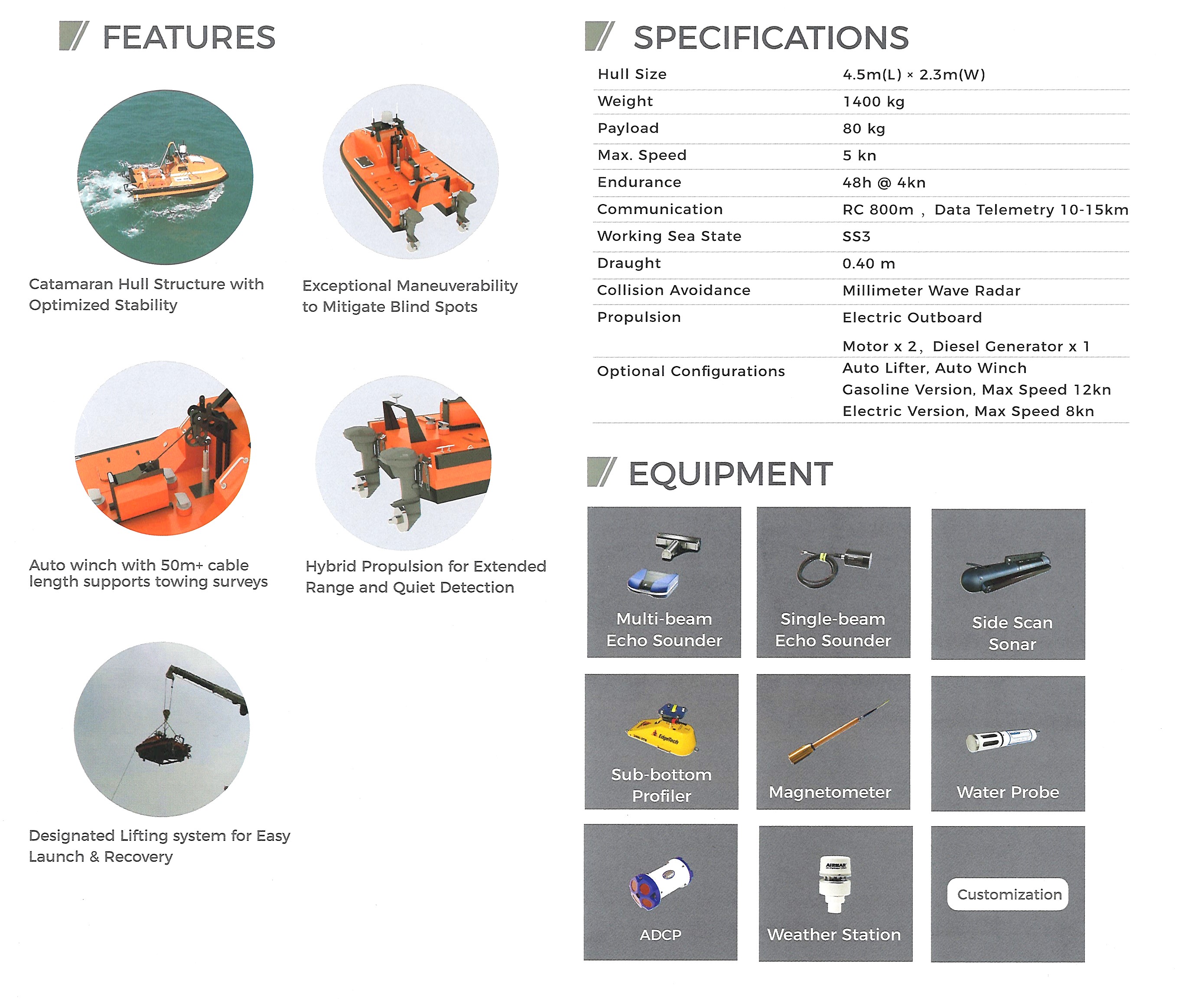 - Автоматическая лебёдка с кабелем длиной 50+ м для работы с буксируемыми гидролокаторами;