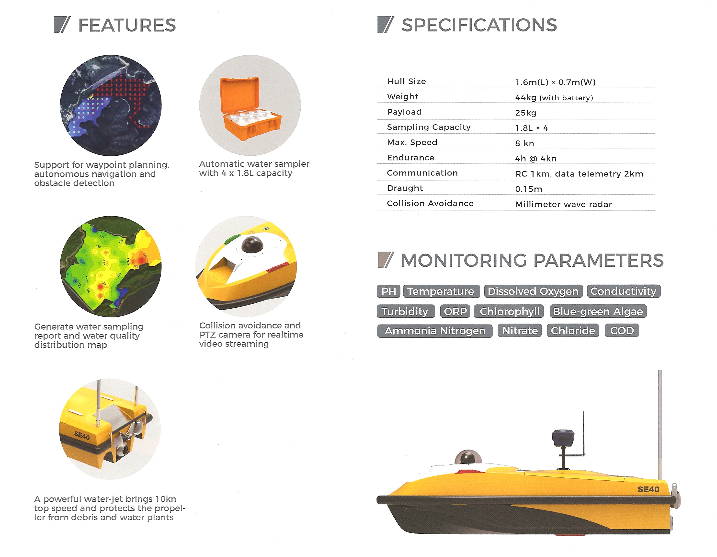- Продолжительность работы: до 4 часов на скорости 4 узла;
